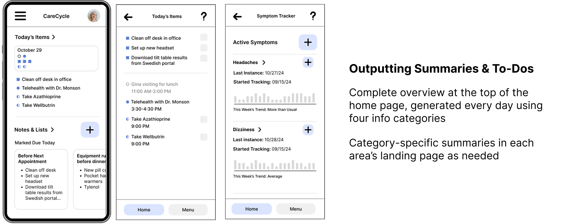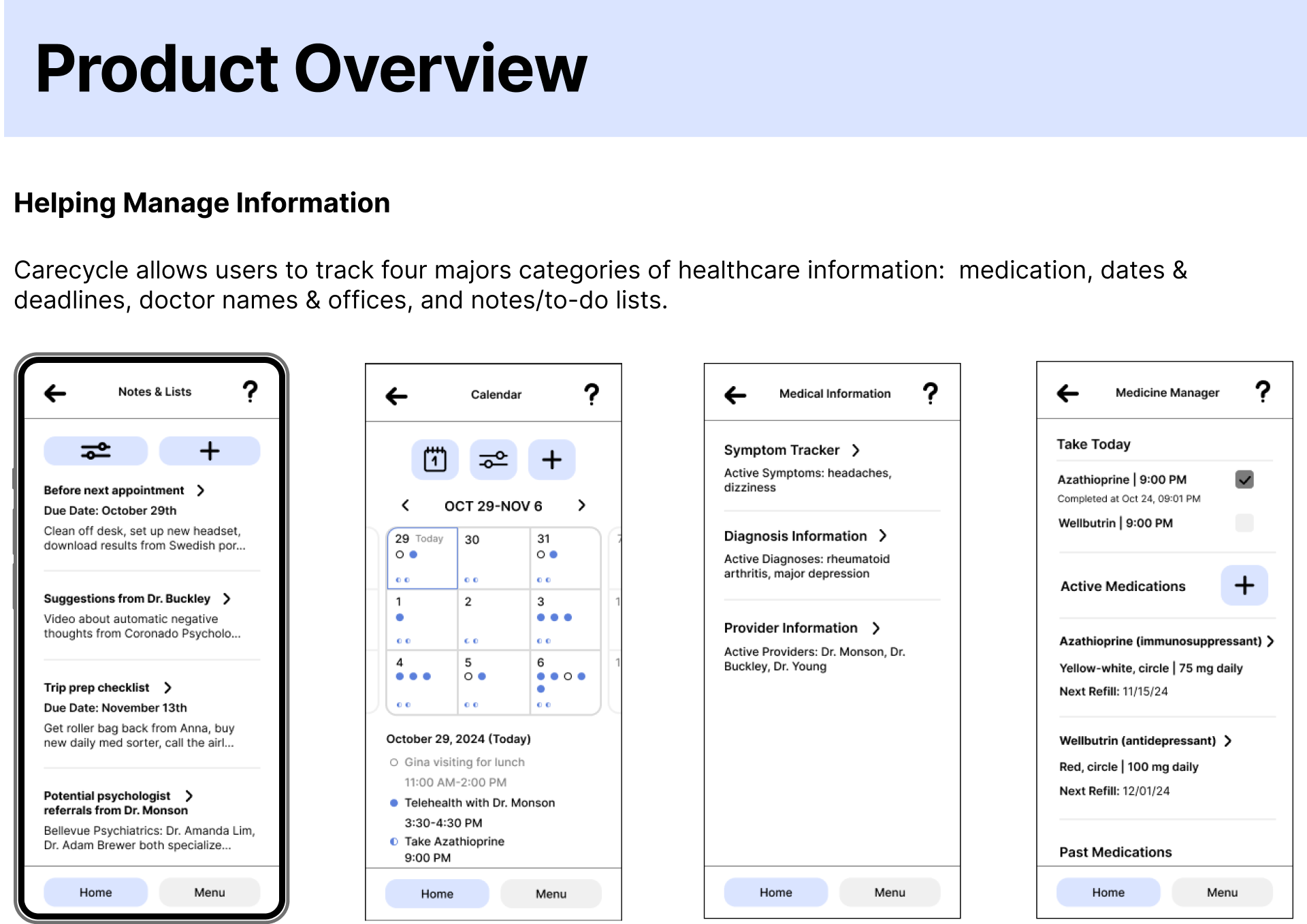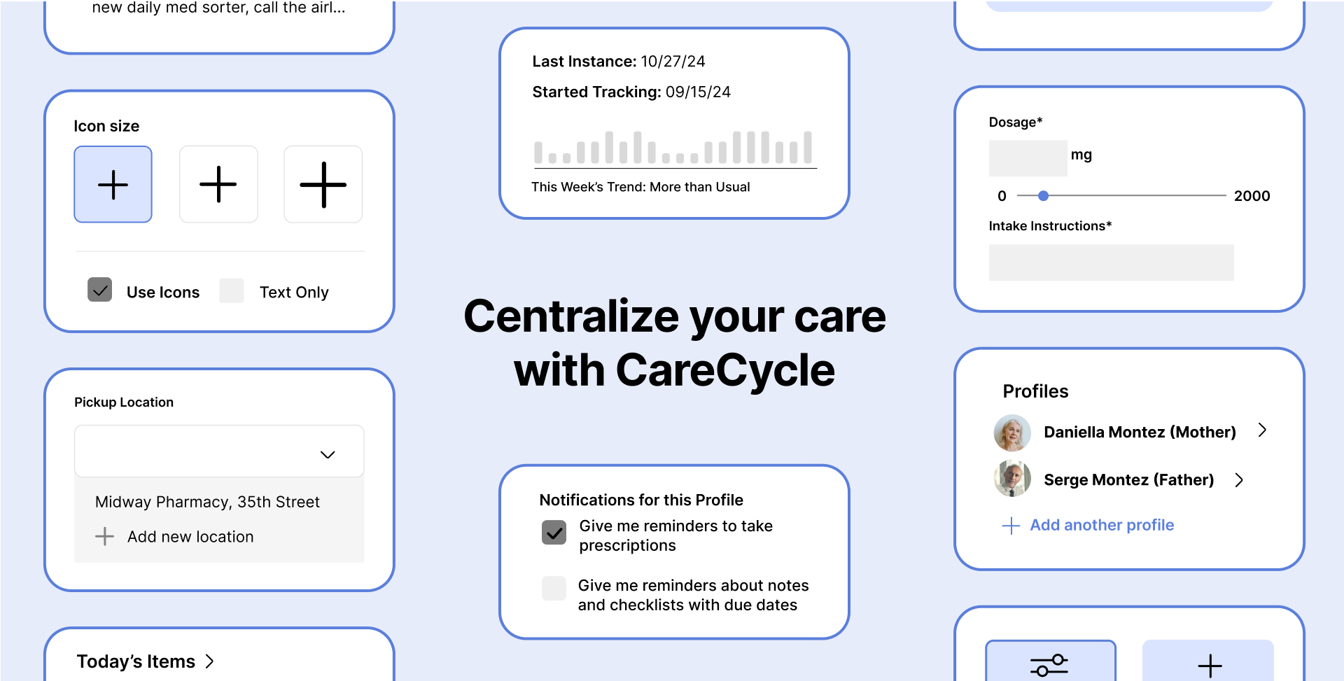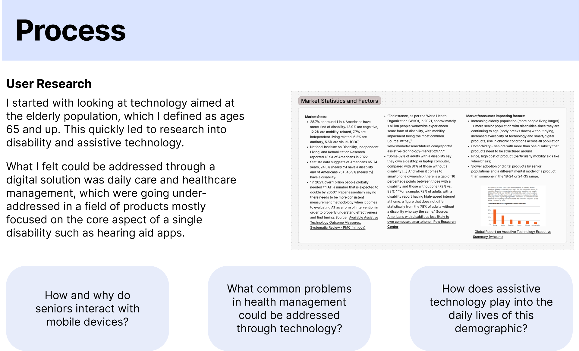 An original app concept centered around streamlining and organizing day-to-day healthcare data created over three months. The starting idea was developing a product for the elderly assistive technology sector.