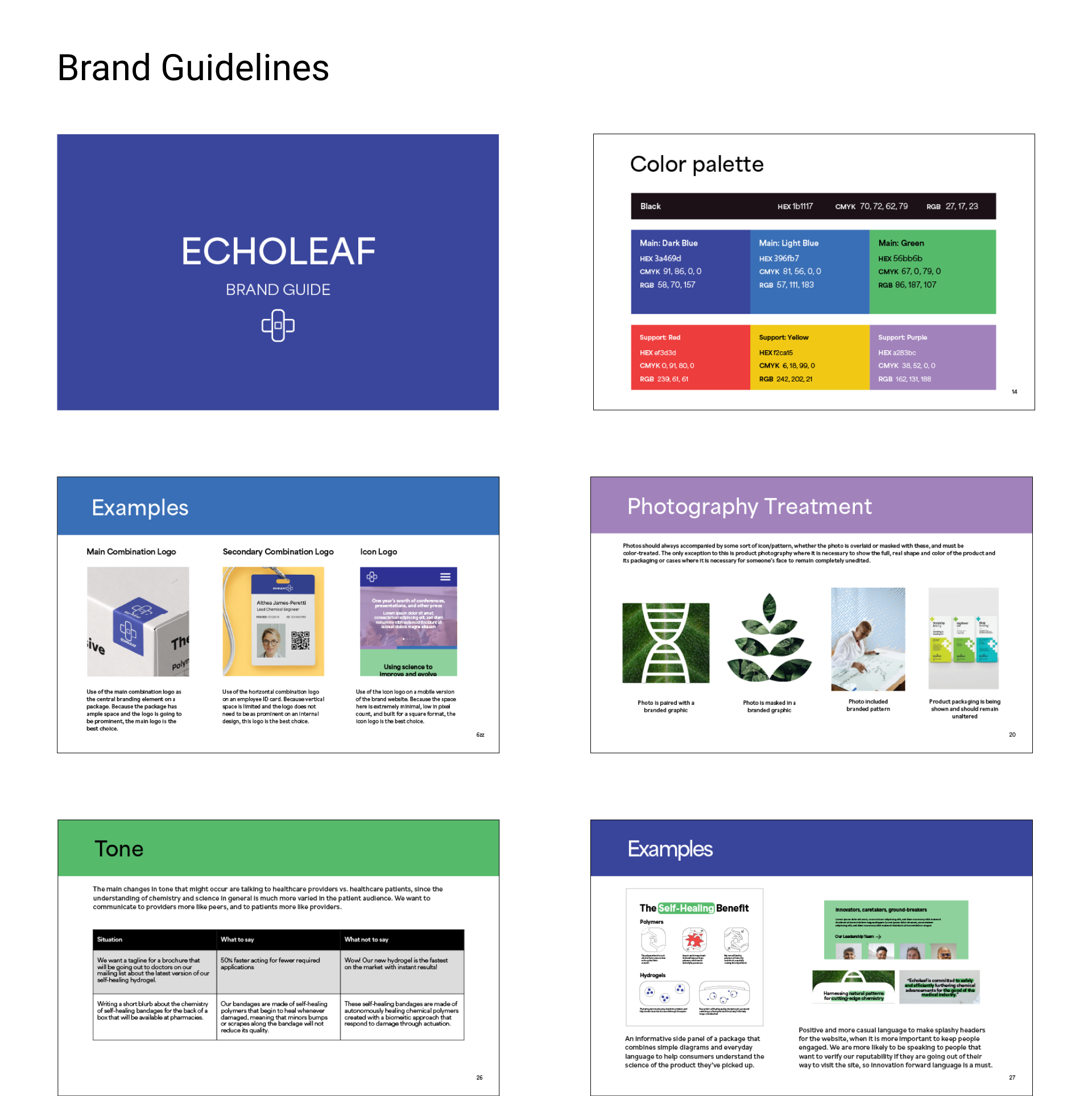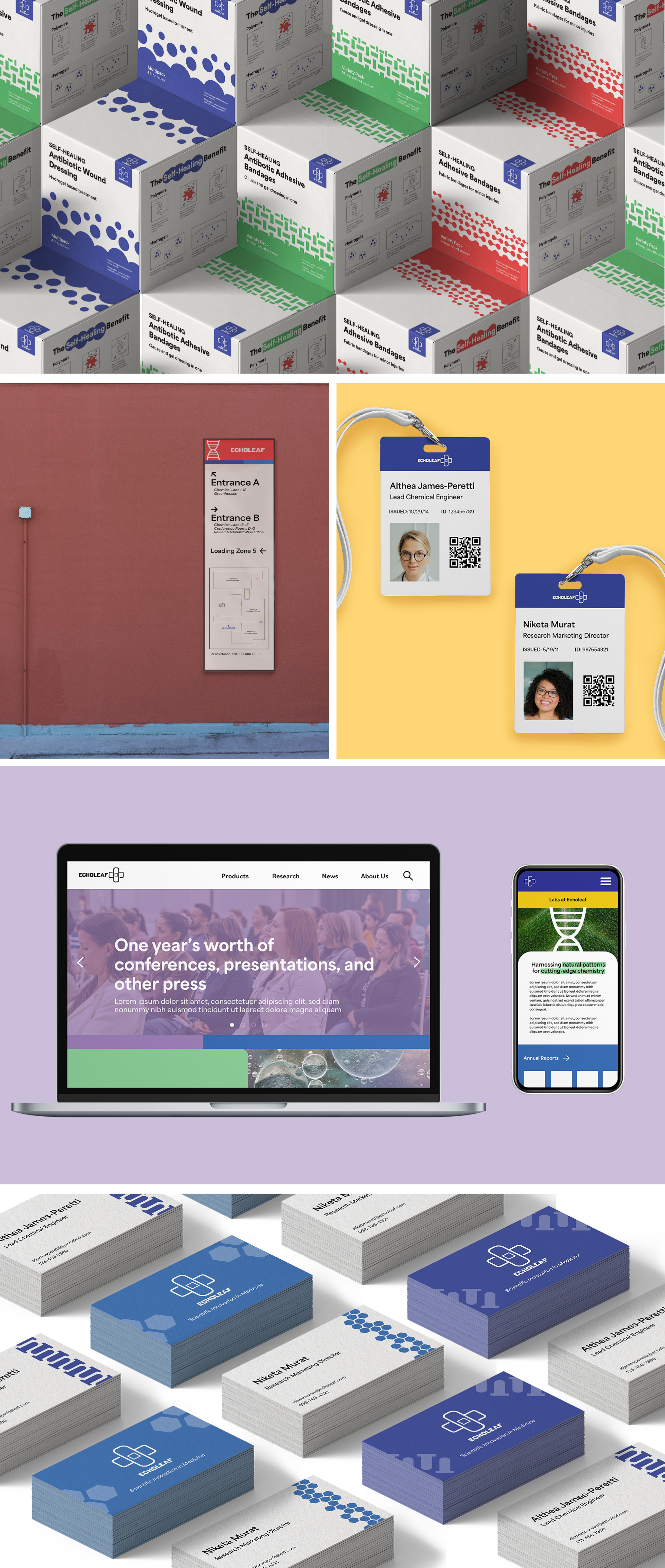 Echoleaf is an original self-healing medical supplies brand. The project was completed over 3 months, starting with investigation into the industry to create an original brand identity.
