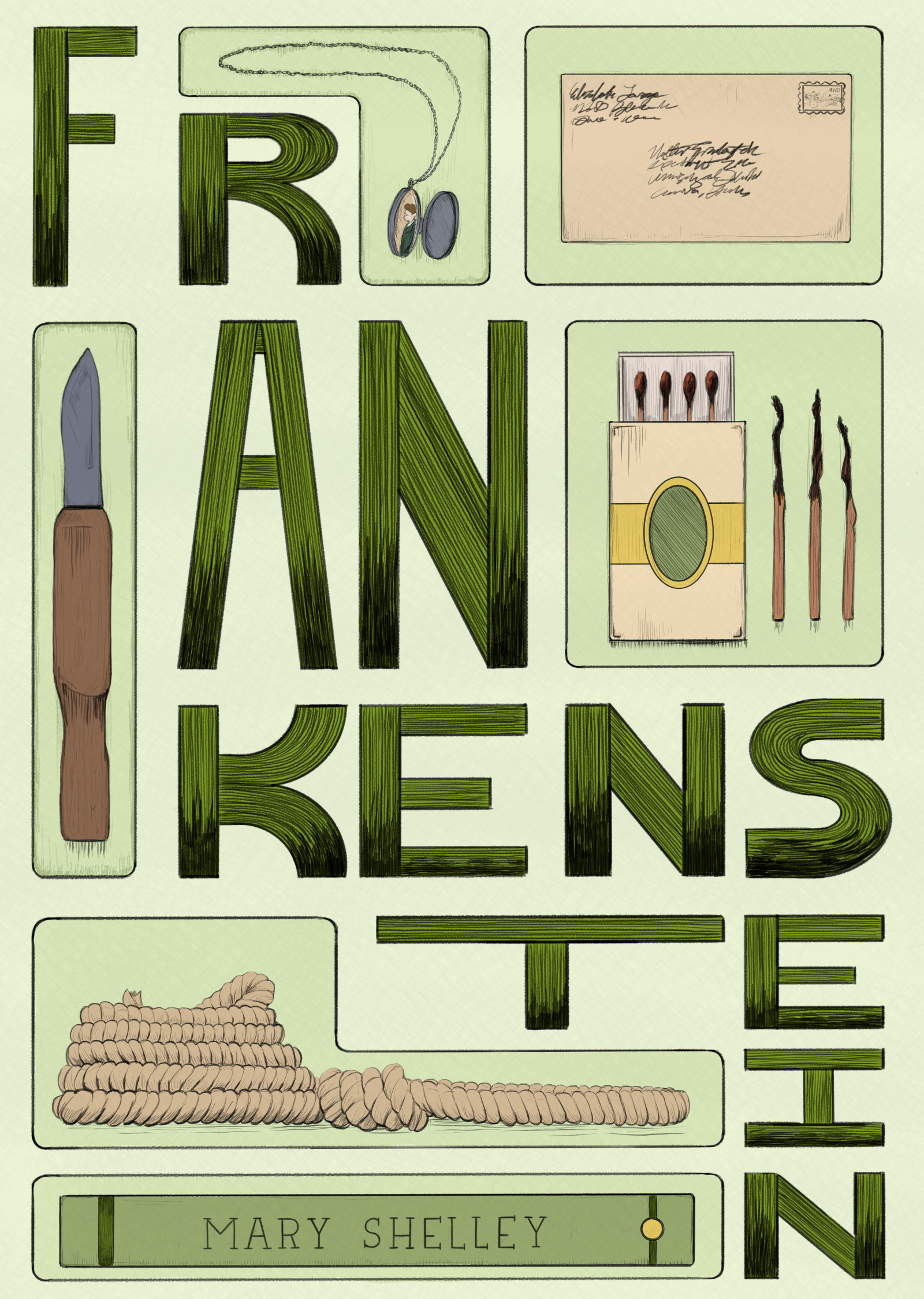 Digital, hypothetical cover for the Mary Shelley’s Frankenstein