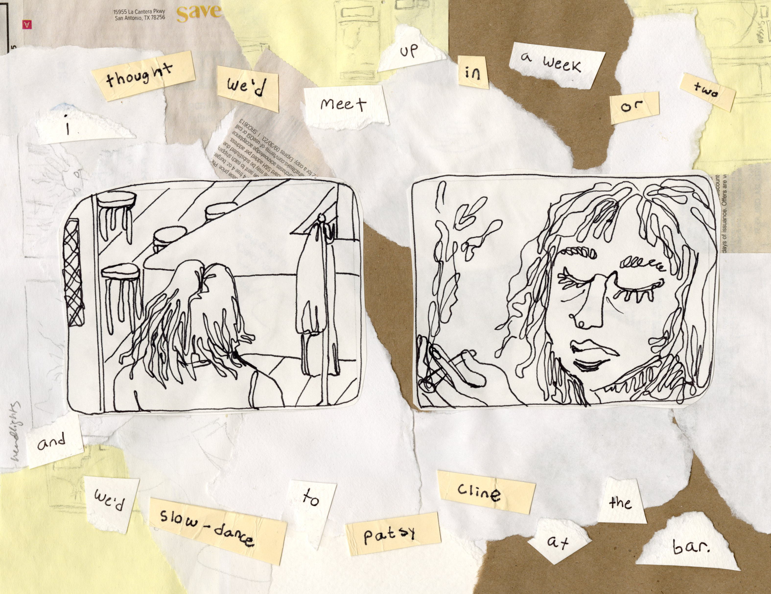 Paper collage, words from Dark Dark Dark’s “Patsy Cline”